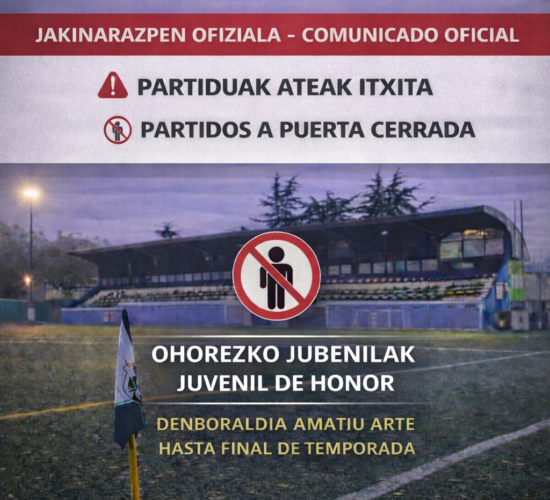 Partidos del Juvenil de Honor a puerta cerrada